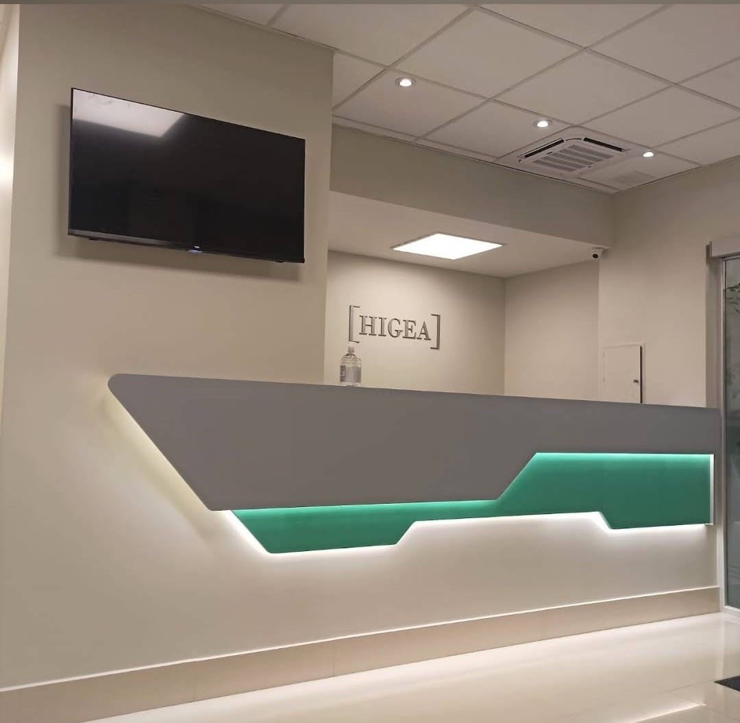 En planta baja, se ubican la recepción, las salas de espera, los consultorios y los sanitarios.