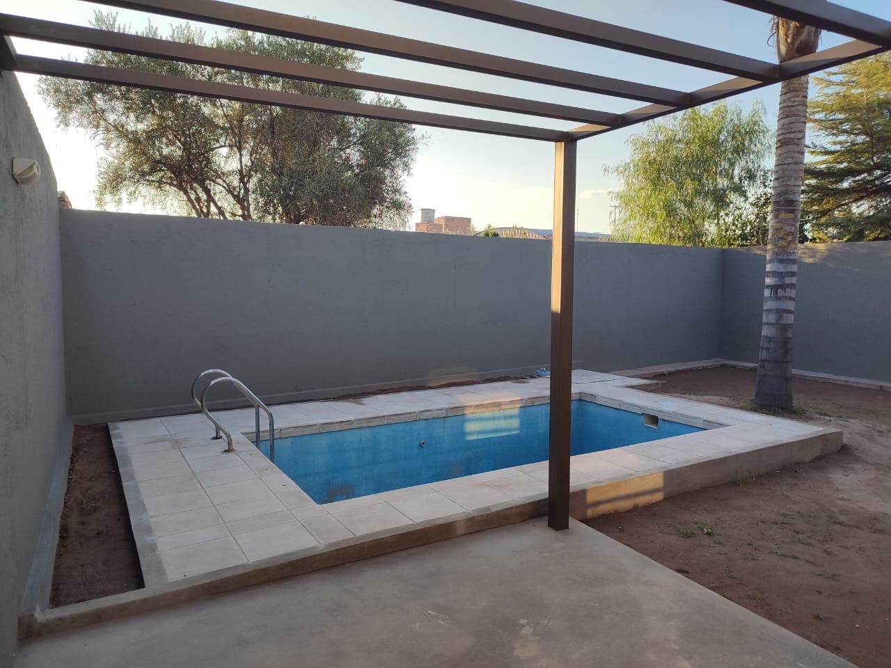 El recorrido culmina en una galería semicubierta, que actúa como transición hacia el jardín, el patio y la piscina, integrando visual y funcionalmente el interior con el exterior.
